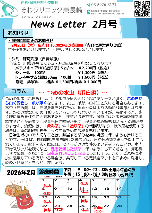 そわクリニック東長崎では毎月クリニックからの最新情報をNew Letterとしてお届けしております。